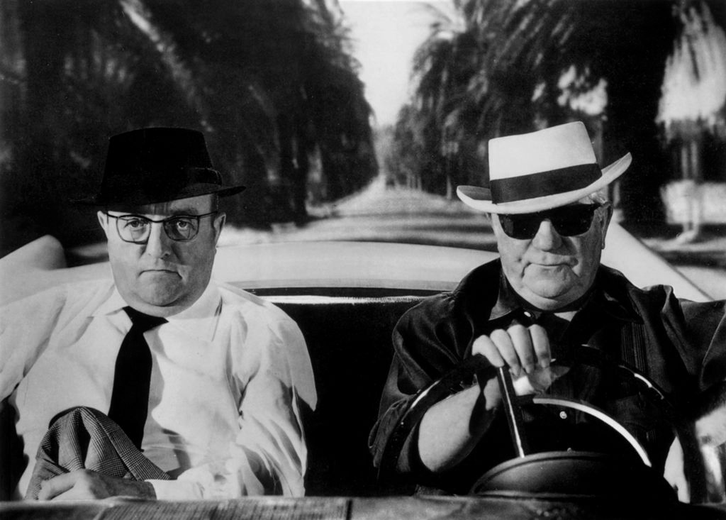 • Duo au sommet : Jean Gabin au volant et Bernard Blier à ses côtés dans une scène culte en décapotable sous les palmiers.