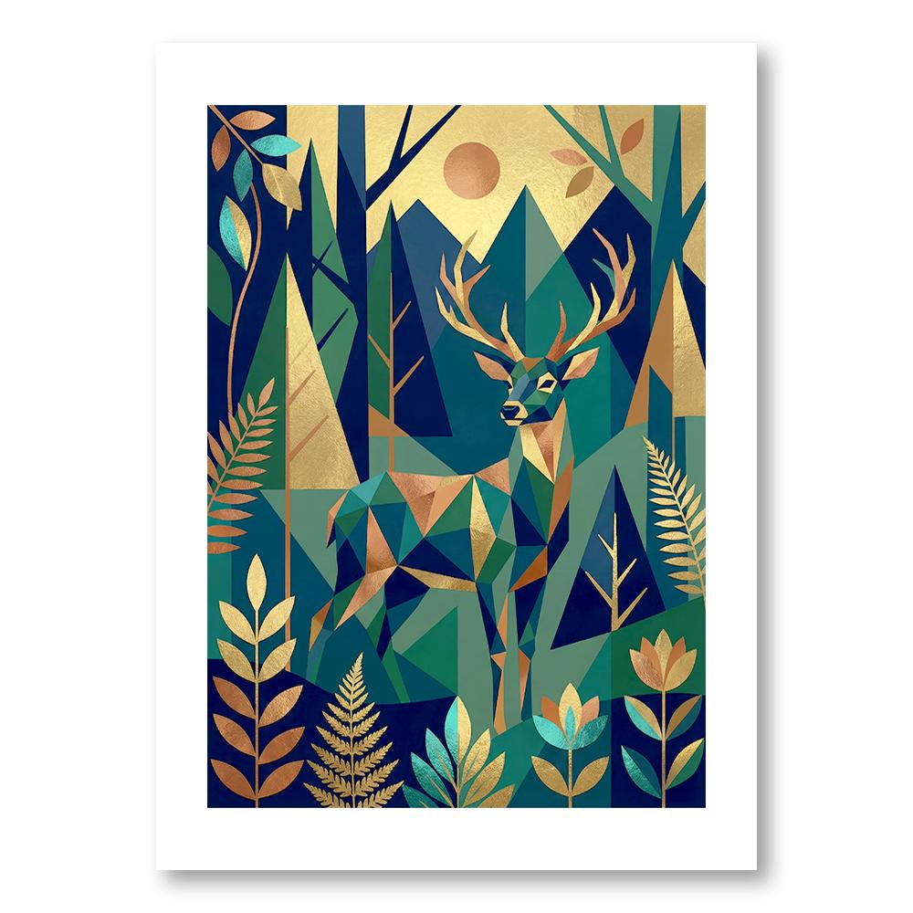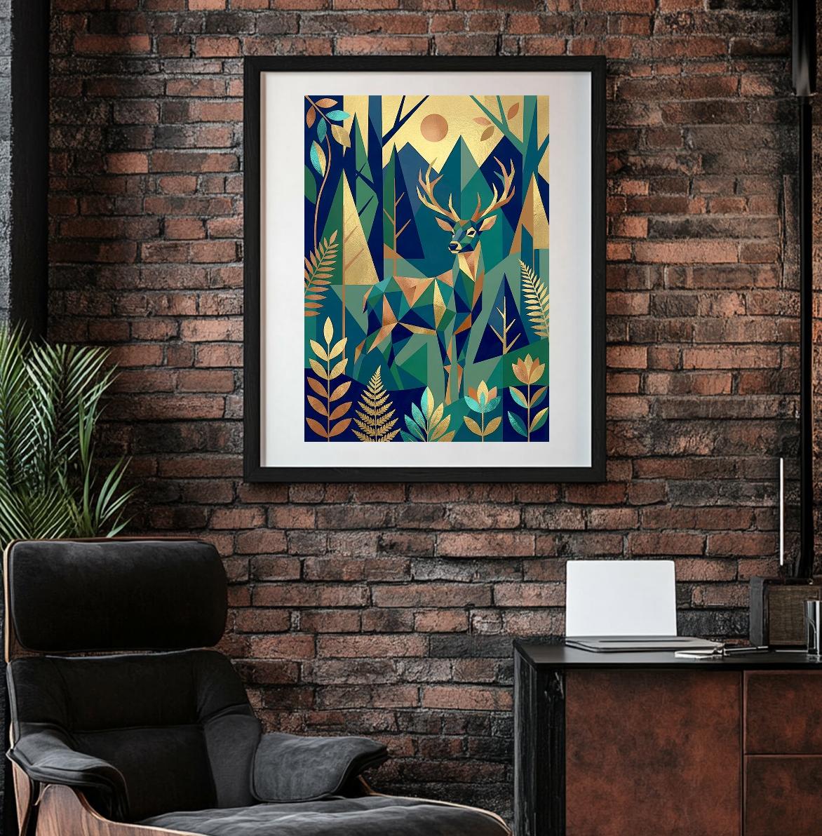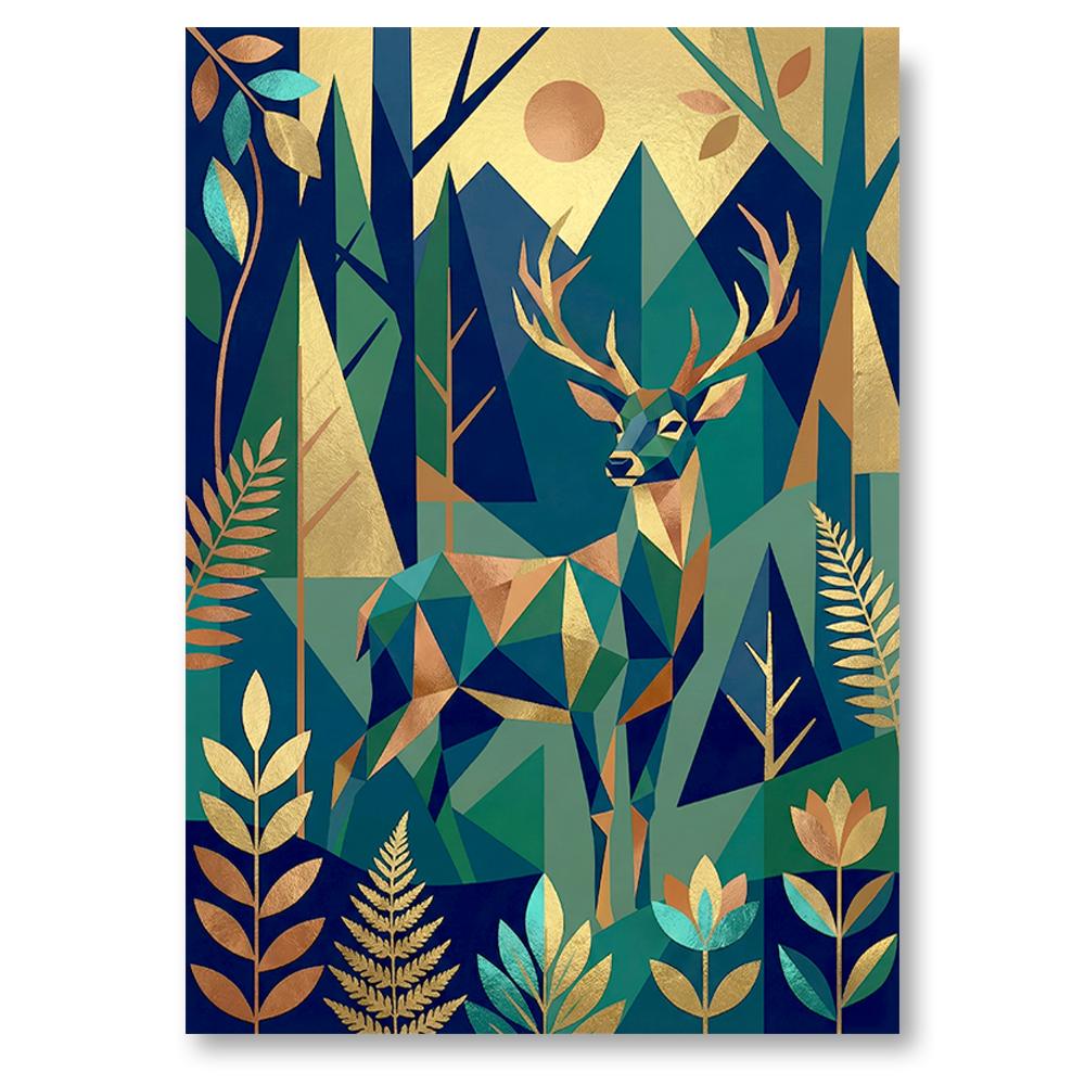 Affiche Cerf Art Déco – Illustration Forêt & Géométrique