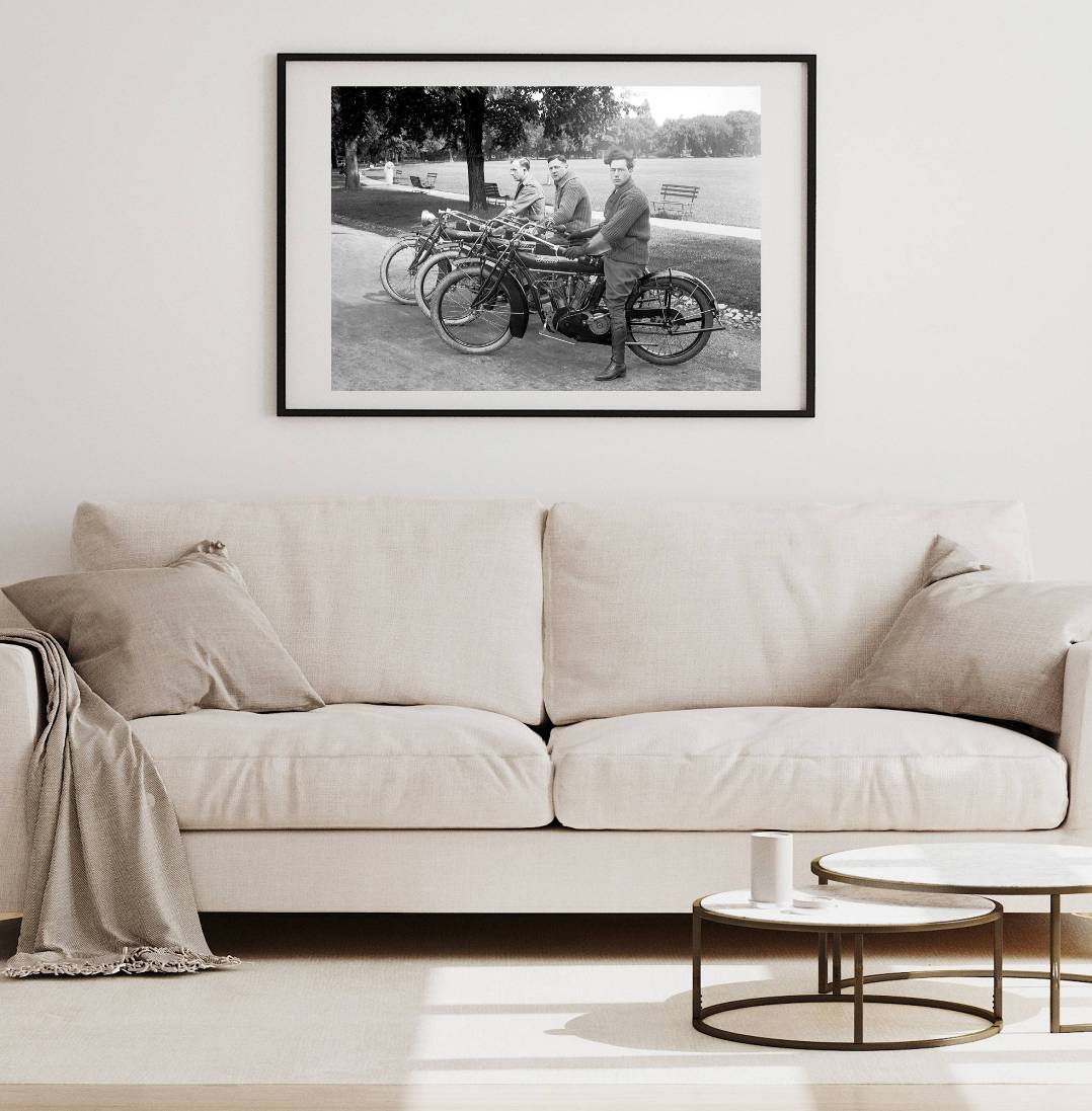 Mots-clés : noir et blanc, motocyclette, bécane, mythique, moto, rétro, vintage, poster, affiche, tableau