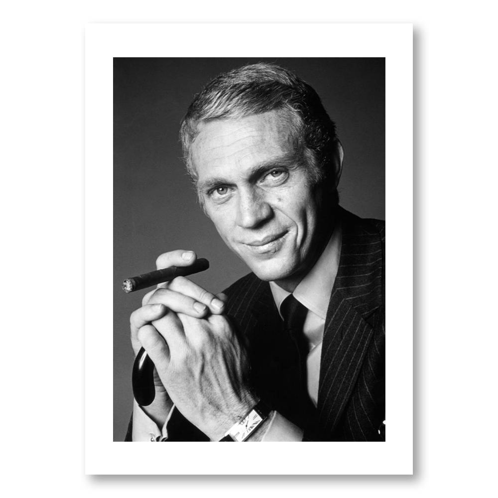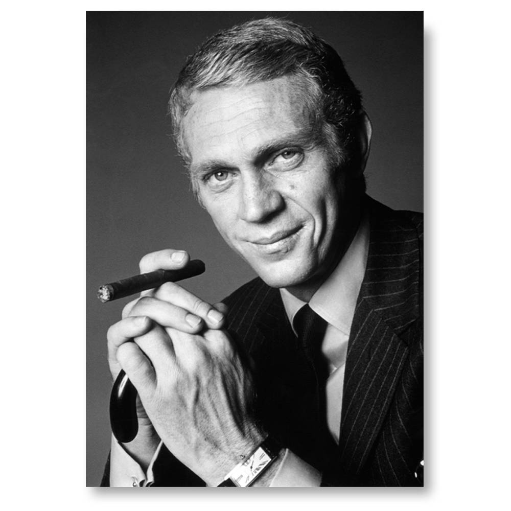 Mots-clés : noir et blanc, américain, acteur, cinéma, film, tournage, Thomas Crown, fumer, cigare, vintage, rétro, affiche, tableau, poster