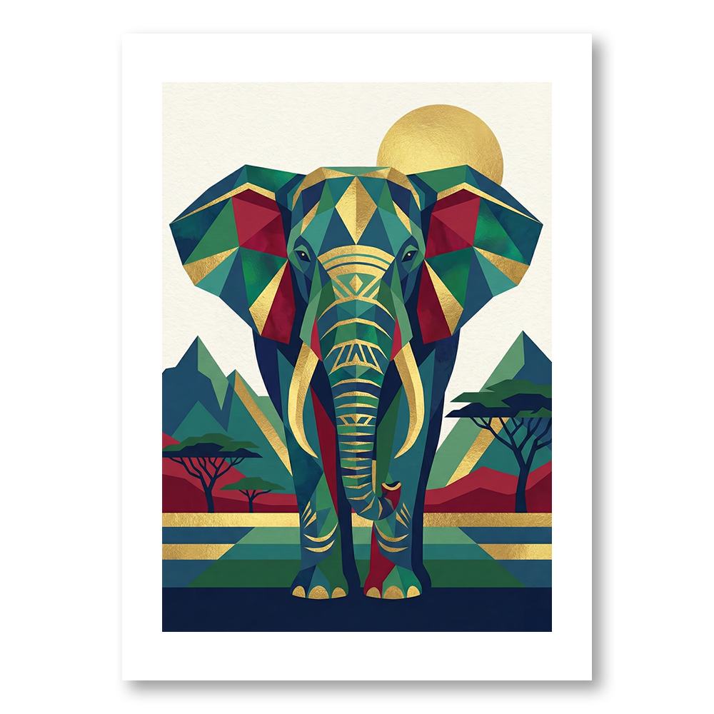 Affiche Eléphant Art Déco – Illustration Savane & Géométrique