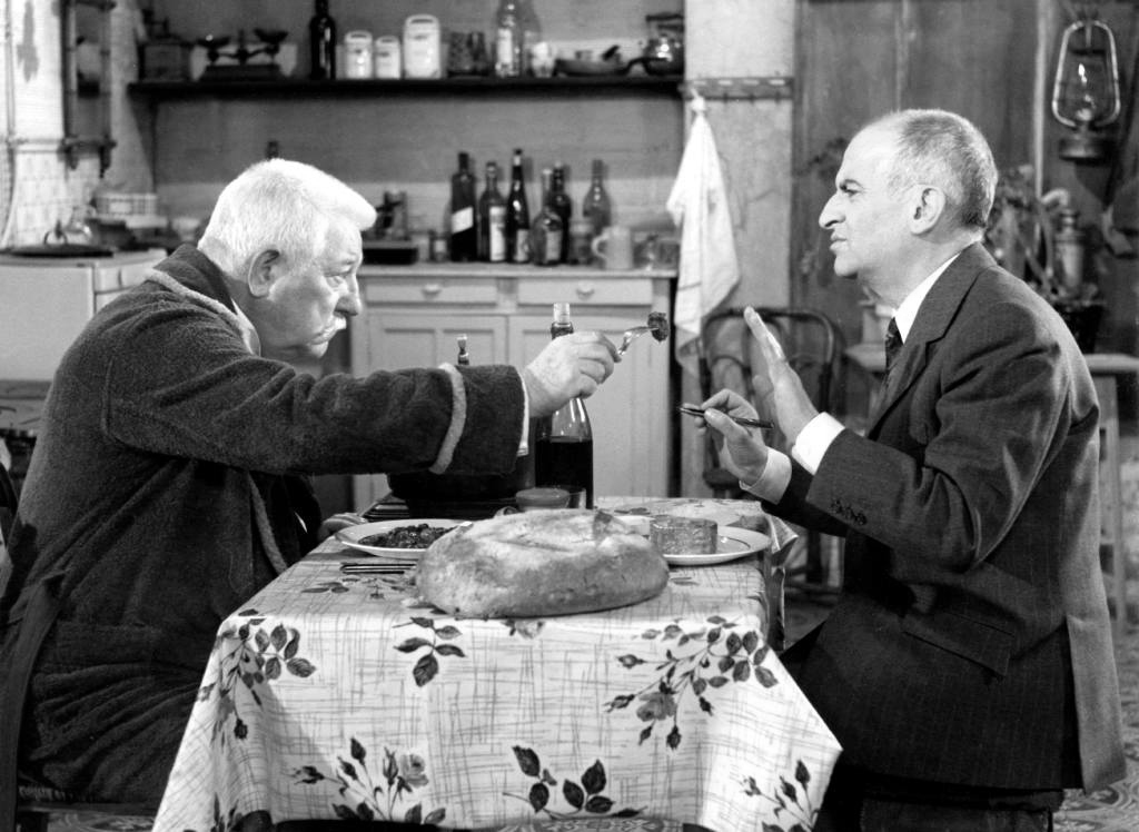 Jean Gabin tend une fourchette. Louis de Funès esquive avec une de ses célèbres grimaces. Le ton est à la fois tendu et comique. C’est toute la force du film : mêler humour et confrontation.