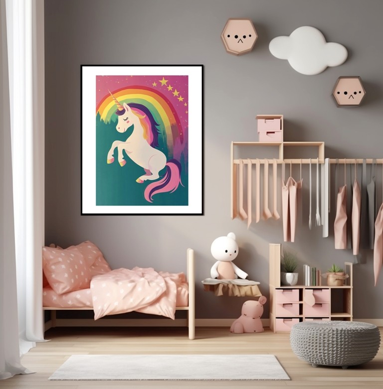 Offrez à votre enfant un voyage féerique au pays des licornes avec notre affiche « Licorne Enchantée ». Cette illustration magique met en scène une licorne majestueuse, entourée d’étoiles scintillantes et d’un arc-en-ciel coloré.