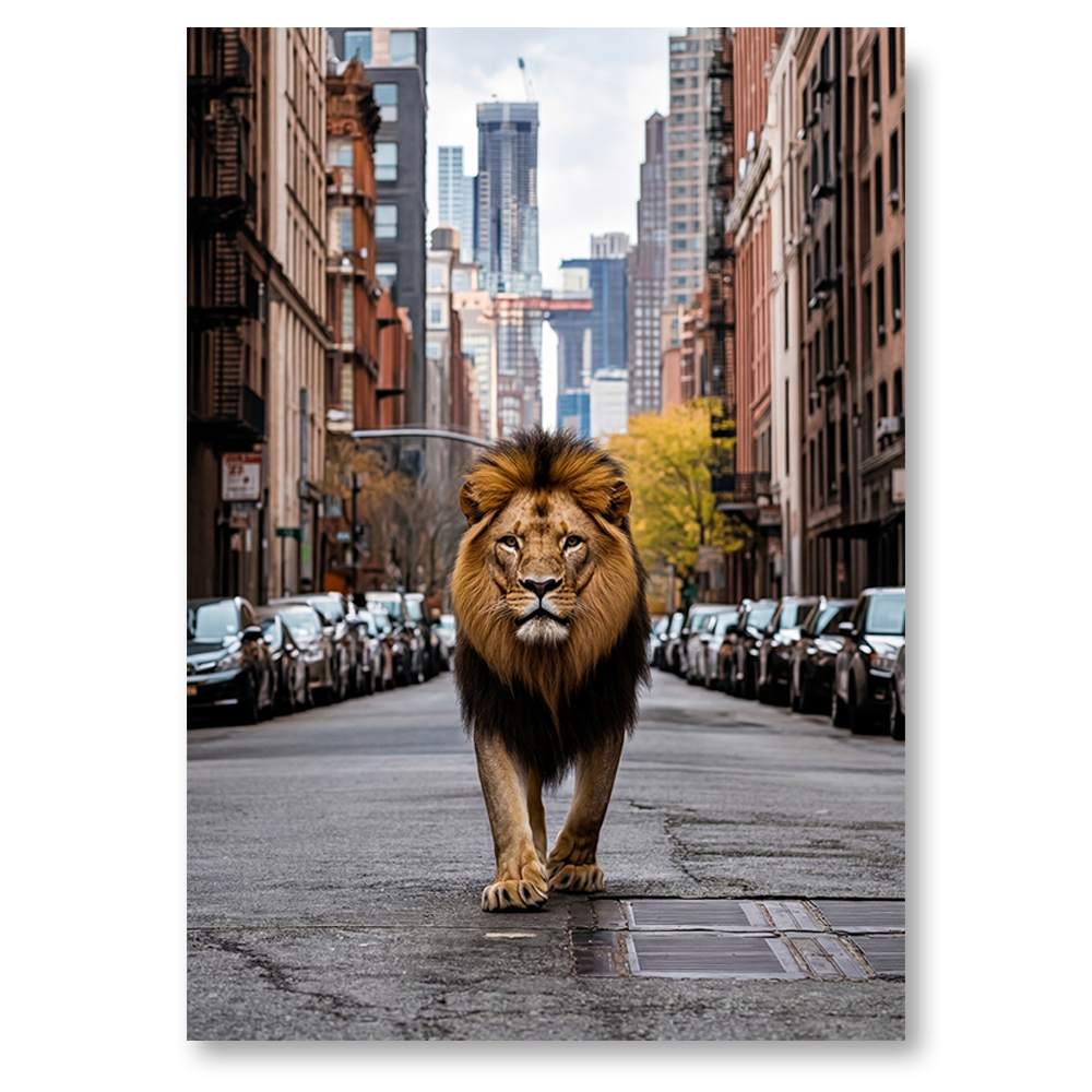 Craquez pour cette affiche vintage unique en son genre, où un lion se fond dans le décor urbain de New York. Un objet de décoration qui ne manquera pas de susciter l’admiration de vos invités.