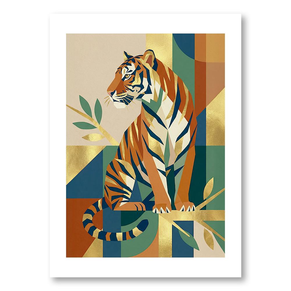 • Force Tranquille : La puissance du tigre capturée dans une pose noble, sublimée par un style Art Déco graphique.