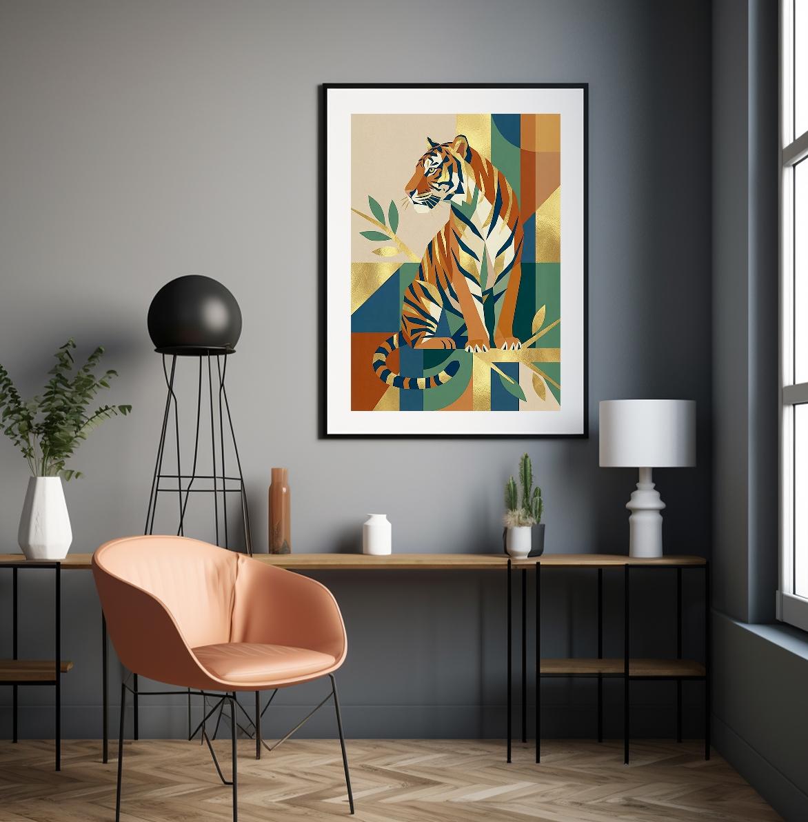 Affiche Tigre Art Déco – Illustration Tropicale & Géométrique